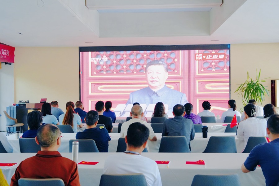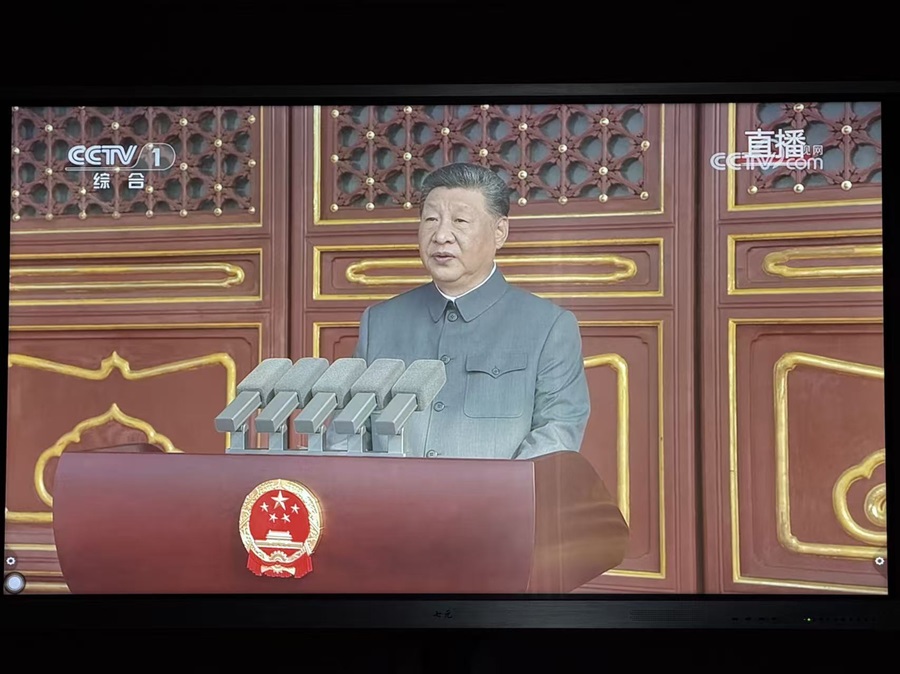 按照集團黨支部安排,3日上午9時,集團總部全體在崗職工在六樓會議室集中觀看了“紀念中國人民抗日戰爭暨世界反法西斯戰爭勝利80周年”活動直播,各項目公司組織干部員工、客戶、業主及合作商等共同觀看閱兵式,懷著無比驕傲和自豪的心情,一起回顧浴血歷史,緬懷革命先烈,銘記正義必勝、和平必勝、人民必勝的偉大真理,并從偉大勝利中汲取奮勇前進的力量,立足自身,為中國式現代化建設、民族復興偉業不懈奮斗,為人類和平與發展的崇高事業貢獻力量。
